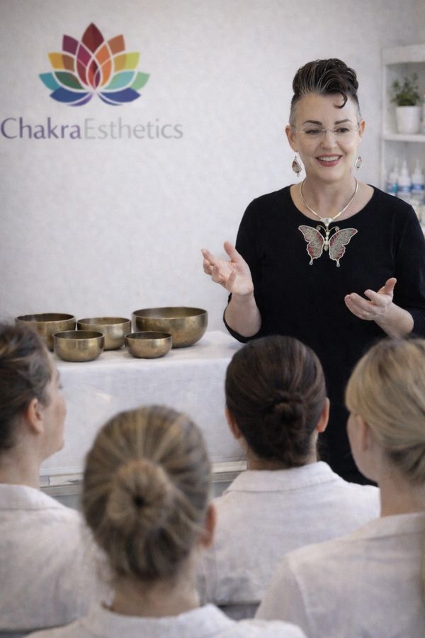 I’m Angela Rafferty, founder of Chakra Esthetics, and I’ve created an in-person and onsite training program to revolutionize your spa sessions with Sound Healing, Gemstone Therapy, and the Chakra System. Think of it as spa magic that not only relaxes your clients but also keeps you from going home feeling like a wrung-out sponge.